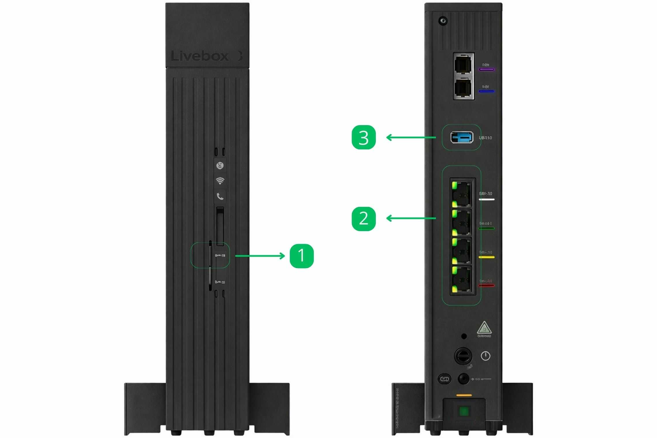 - Y USB 3.0 (3) para conectar discos duros o memorias USB y compartir archivos en la propia red doméstica.